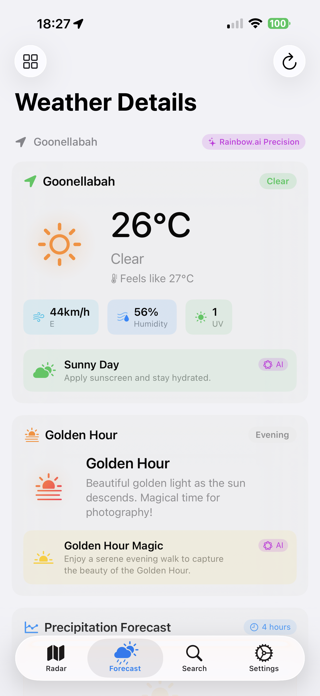 RainSeer delivers precise rain predictions and real-time radar with smooth, animated overlays on an interactive map. Track precipitation movement and get customizable notifications before rain arrives at your location. Privacy-focused with all location data staying on your device.